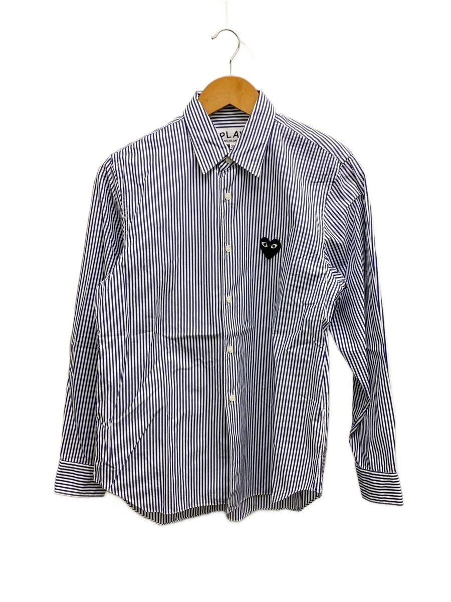 > PLAY COMME des GARCONS◆STRIPED L/S SHIRT/長袖シャツ/XS/コットン/BLU/ストライプ/AX-B018