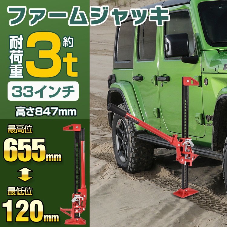 - 送料無料 ファームジャッキ 車 ジャッキアップ 3t 33インチ タイガージャッキ ハイジャッキ オフロード 655mm ジムニー ジープ SUV ee333