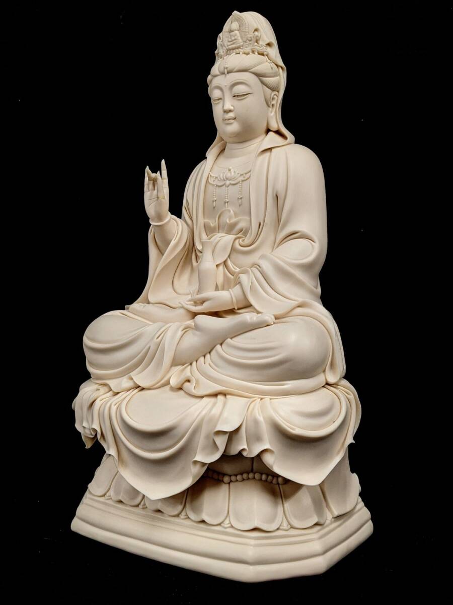 > W352 中国 徳化窯 連紫華製 白磁 聖観音菩薩坐像 仏像 重さ約5kg/140