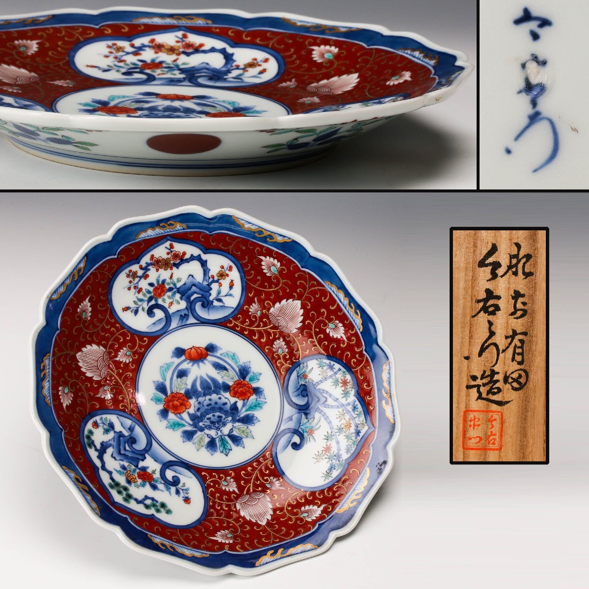 【佳香】十二代 今泉今右衛門 錦唐花松竹梅絵皿 作家一致木箱 本物保証拍卖