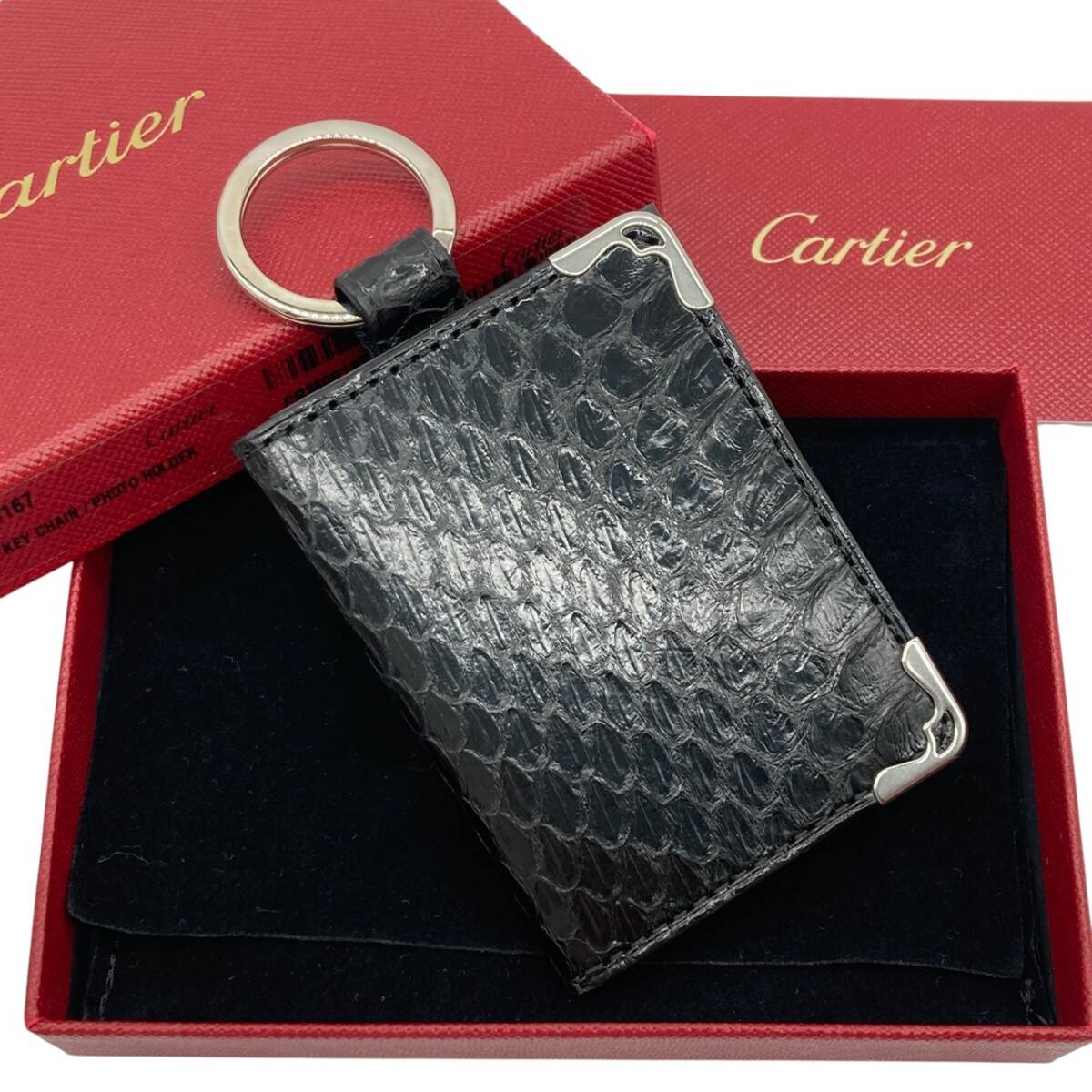 - CARTIER カルティエ マストドゥ パイソン キーホルダー キーケース キーリング フォトケース ブラック 未使用