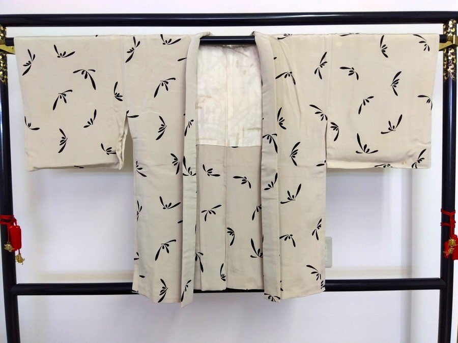 - アンティーク 羽織り 正絹 ベージュ 灰梅 羽織丈75.6cm 925 ggp