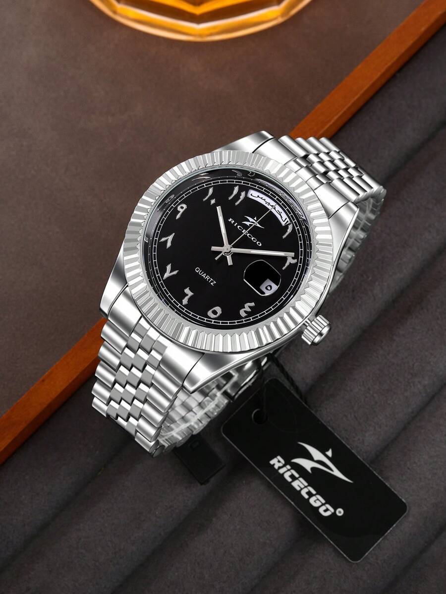 > 腕時計 メンズ クォーツ 1個 メンズクラシック クォーツ スチールバンド腕時計 カレンダー表示、デイリー着用、ビジネスミーティ