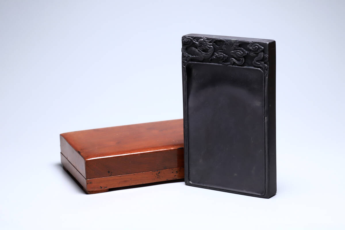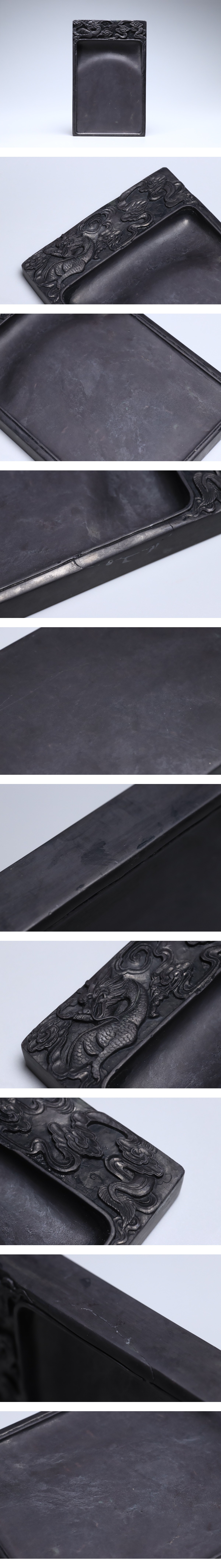 - 古硯 端渓硯 龍紋彫 唐木箱 書道 時代物 端渓硯/歙州硯/古墨/古美術/骨董品 L07826