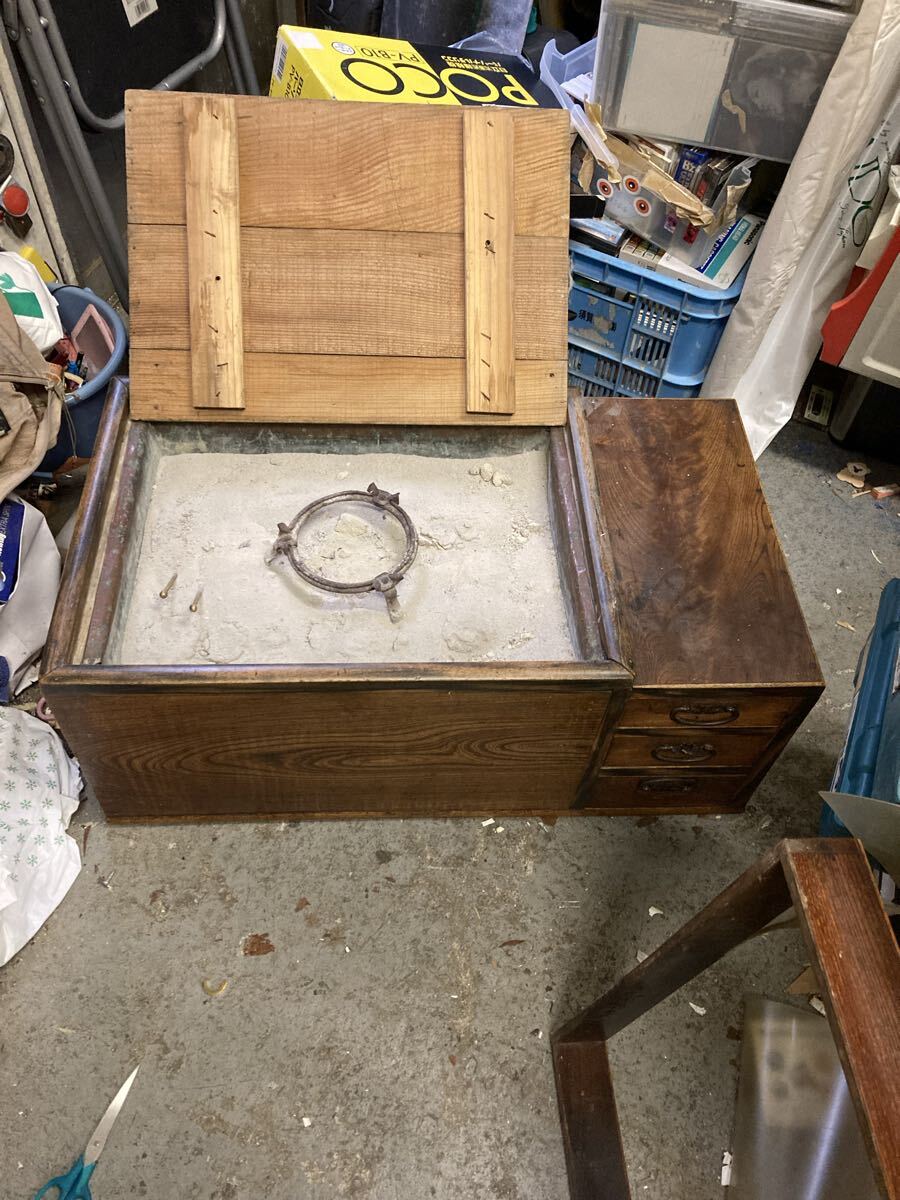 - 【家財】 レトロ アンティーク 長火鉢 囲炉裏 古民具 茶道 テーブル 火鉢 レトロ 座卓