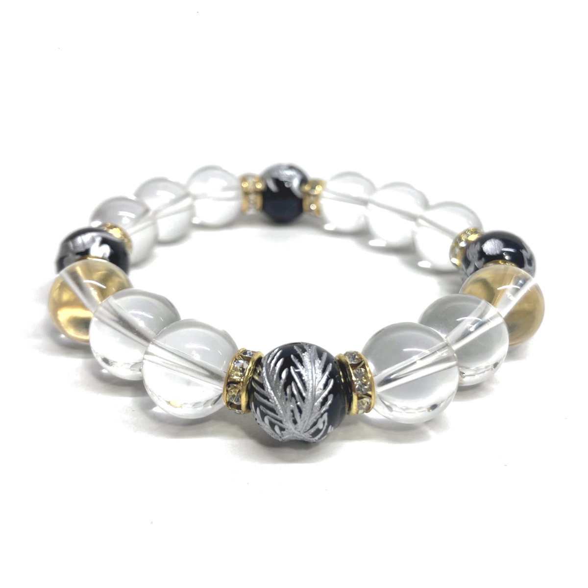 - 四神獣銀彫オニキス×水晶 12mm パワーストーン ブレスレット天然石 青龍 白虎 玄武 朱雀 運気上昇 開運 金運 お守り 四神獸 四神相応 G
