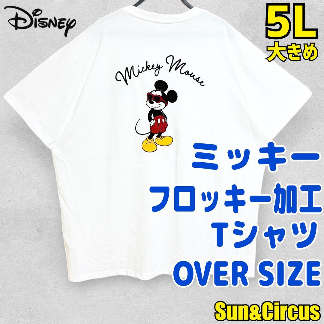 - メンズ大きいサイズ5L〜6L ミッキー フロッキー加工 Tシャツ 大きめ 白