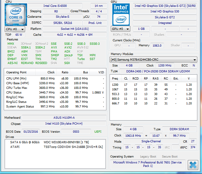 > Windows 7 32bit 搭載 ★ ASUS H110M-A,Core i5-6500,メモリ4GB,HDD 1TB,DVDマルチ,USB3.0,VGA,DVI,HDMI,PS/2,Windows 8,10,11 出荷可