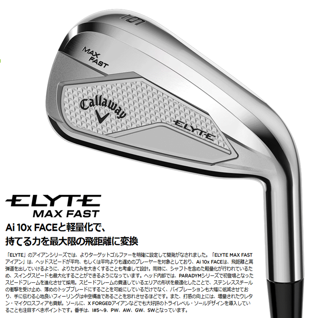 > 新品■2025.2■キャロウェイ■ELYTE-MAX-FAST■単品アイアン1本■G-WEDGE■LIN-Q GREEN40 for CALLAWAY カーボン■やさしい!■正規品