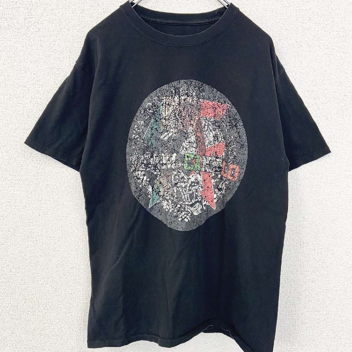 > 古着 used Hanes ヘインズ 半袖プリントTシャツ レトロデザイン クルーネック 黒 ブラック Mサイズ