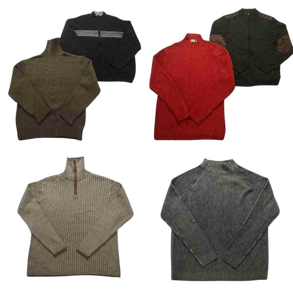- 古着卸 まとめ売り ドライバーズリブニット セーター 6枚セット (メンズ XL ) ライン エルボーパッチ ハーフジップ NC3172 1円スタート