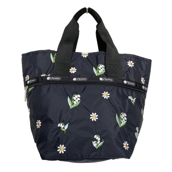 > レスポートサック LESPORTSAC ハンドバッグ - 黒×白×マルチ 刺繍/フラワー(花)/Chestyコラボ バッグ