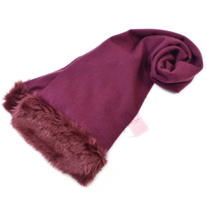 - マフラー ケイト スペード ニューヨーク ファー付き レディース ウール カシミヤ混 ロゴ 刺繍 ダーク パープル 女性 婦人