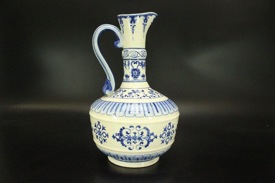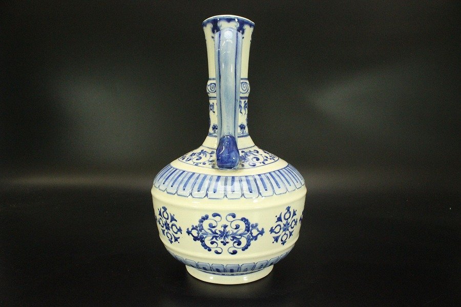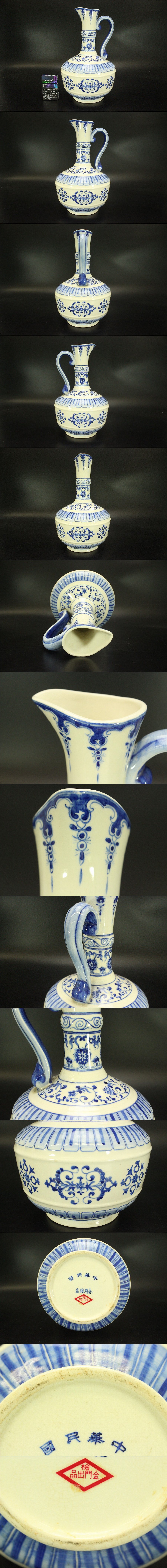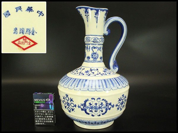 > 【銀閣】中国美術 青花 纏枝花紋 水注 瓶 中華民国 旧家蔵出 送料無料(A884)