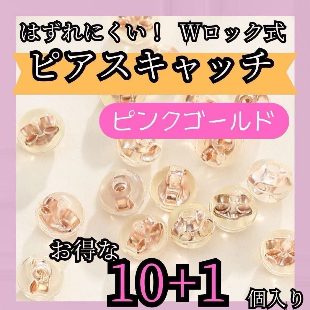 - ピアスキャッチ シリコン 落ちない 11個 ピンクゴールド 超強力 ダブルロック ハンドメイド スタッド 大容量 外れにくい キャッチ ピンク