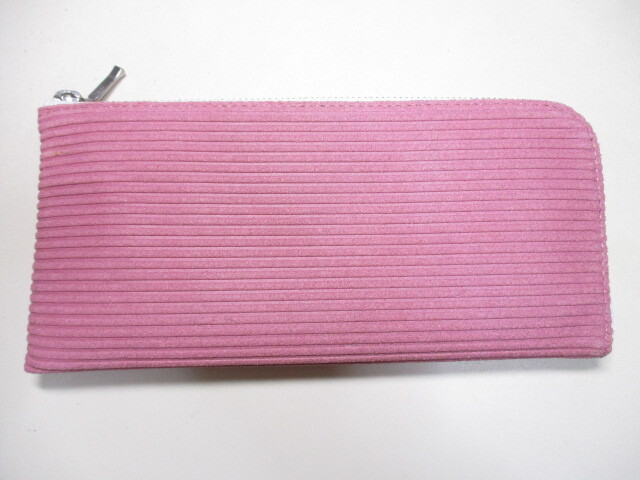 - 新品 未使用 財布 長財布 Lラウンドファスナー スリム 薄マチ ストライプデニム ピンク