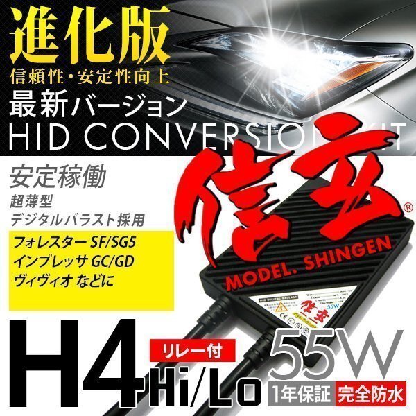 > 新品 Model 信玄 HID H4 55W リレー付 6000K スバル フォレスター SF SG5 インプレッサGC GD ヴィヴィオに 最薄 安心の1年保証