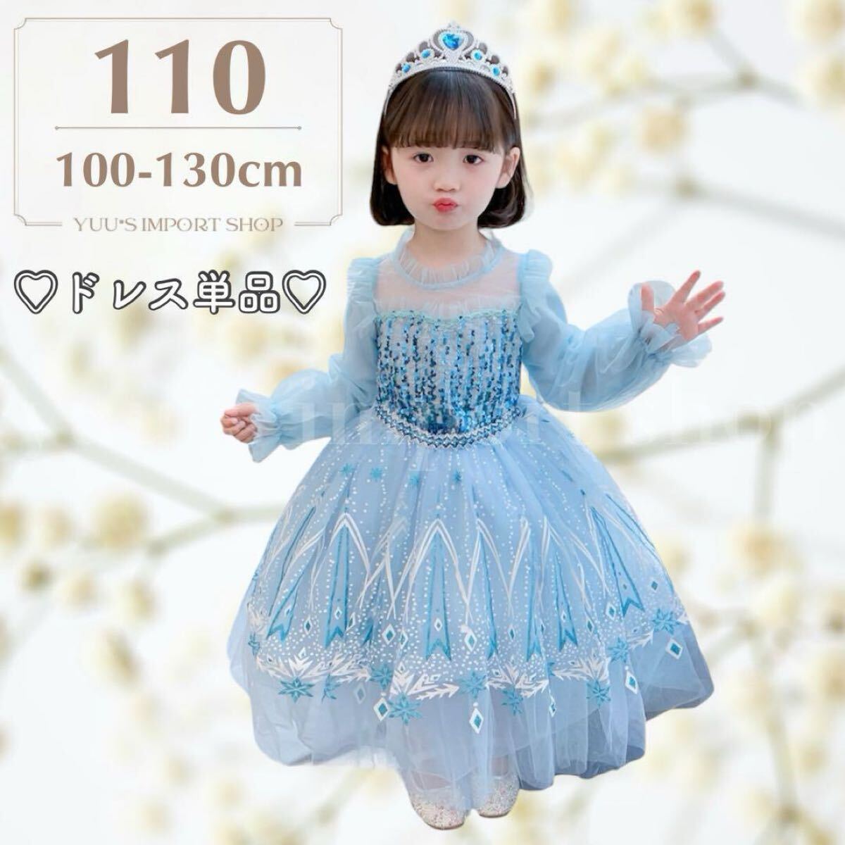 - ワンピース ドレス ハロウィン 女の子 110 プリンセス 衣装 仮装 なりきり エルサ ディズニー 水色 青 ロング丈 長袖 姉妹コーデ お揃い