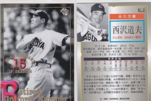 > ●2001BBM 【西沢 道夫】 永久欠番 No.539:中日 R9