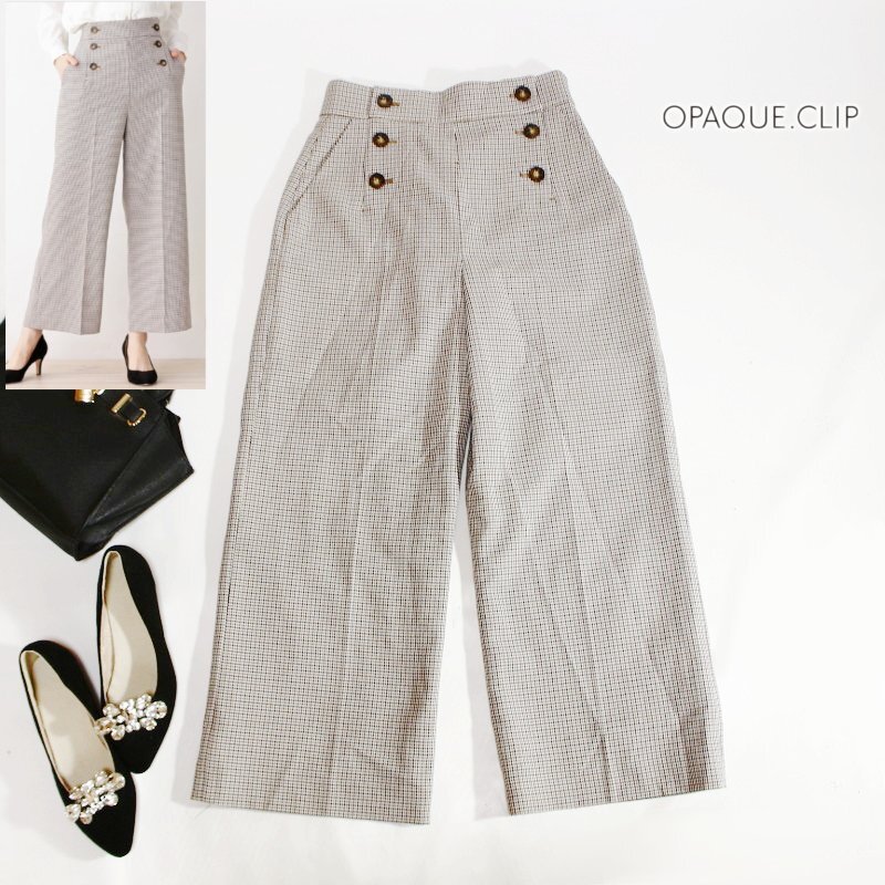 - 美品 オペ―ク ドットクリップ OPAQUE.CLIP 株) ワールド 秋 冬 洗える 千鳥 柄 格子 ツイルマリンワイドパンツ パンツ S ホワイト 黒