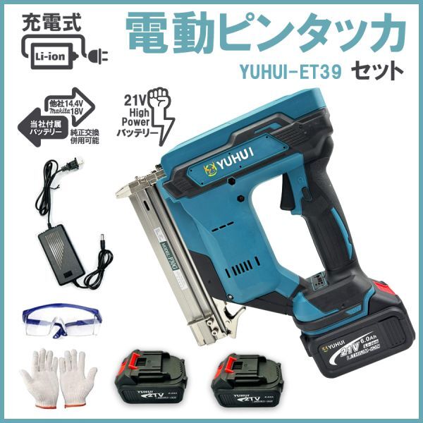 > ★送料無料・30日間保証付き★電動ピンタッカー 充電式-釘打ち機 単発連続切替可 建築部材製造 家具木工用 軒天仮留め バッテリー2個セット