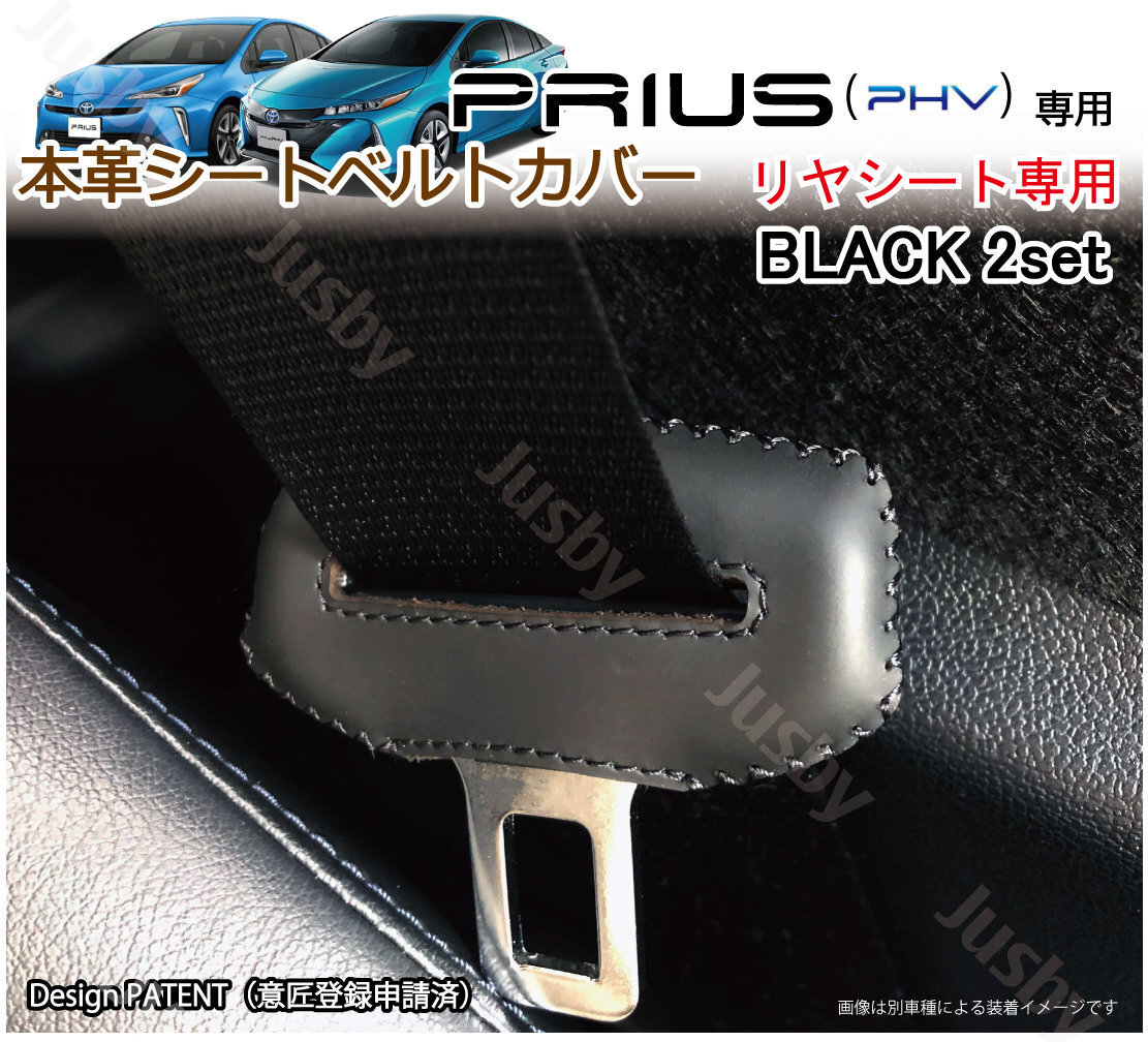 > (黒ステッチ/後部座席) プリウス & プリウスPHV (50系)専用 本皮シートベルトカバー 傷防止に シートカバーやフロアマットと一緒に♪