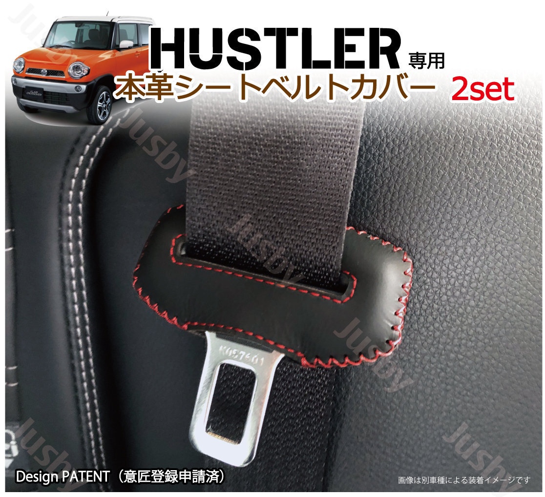 - (本皮/本革)スズキ ハスラー(HUSTLER)専用 シートベルトカバー (赤ステッチ)レザーカバー/ドレスアップ MR31S 41S パーツ