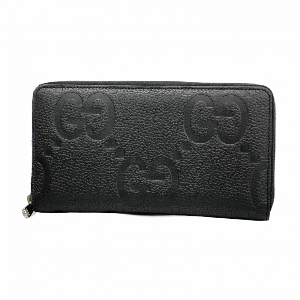 > 【5mc2720】グッチ 長財布 ジャンボGG 739482 2091 レザー ブラック シルバー金具【中古】メンズ