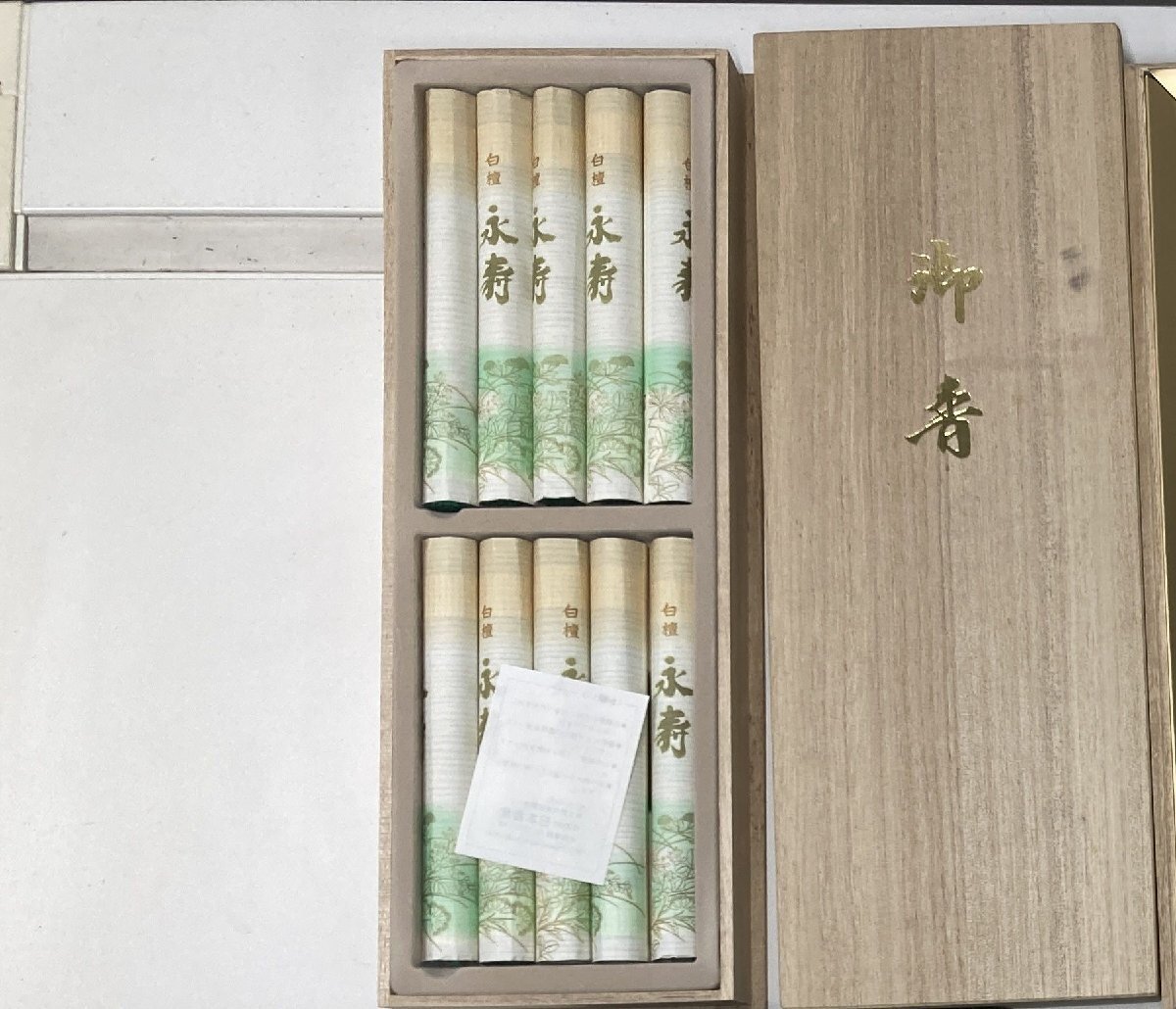 - 訳あり 未使用品 白檀永寿 桐箱短 線香 10入