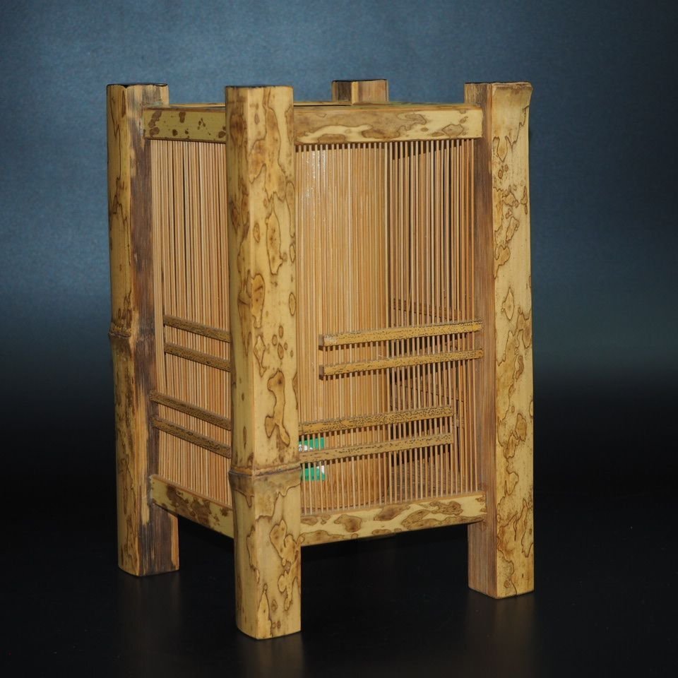 - 【金富士】値下げ中 斑竹胡麻竹使用 四角花入れ 高24cm★希少★ 検/茶道具 竹工芸 竹細工 竹製 竹根 花器 花生 裏千家中国古