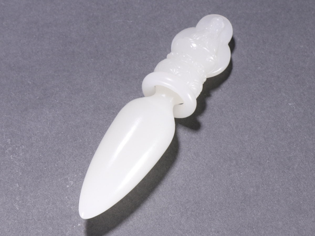 - ▽鴻▽ 清朝時代 和田玉 白玉彫 観音活環杵 時代物 中国古美術 骨董品