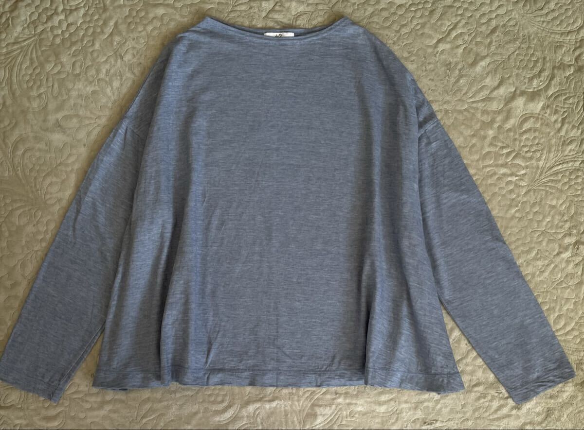 > +2 100% a handred percent カットソー 薄い青 ボートネック風 Aライン プラスツー 綿100% コットン マークアンドプラス日本製