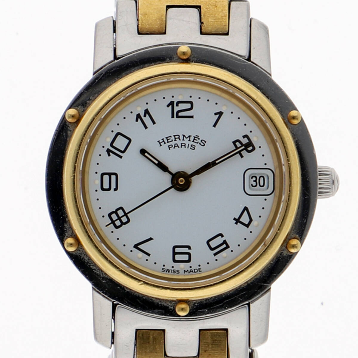 > HERMES エルメス CL4.220 クリッパー ホワイトダイヤル SS/GP クオーツ レディース【136522】