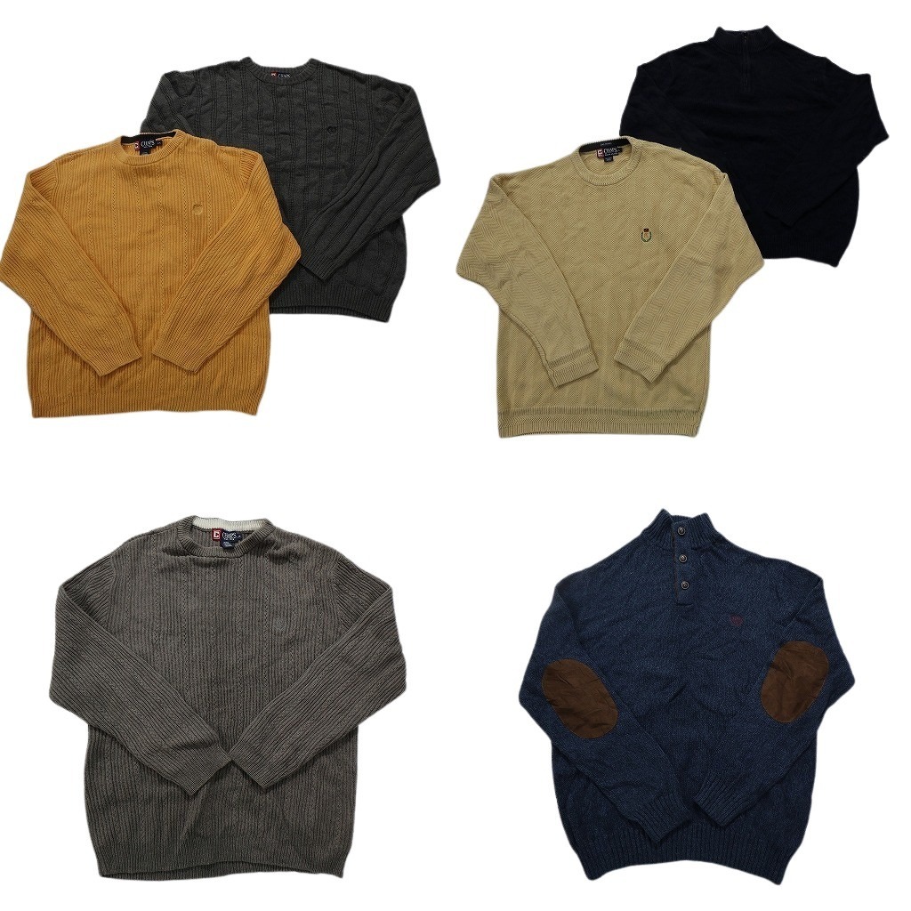> 古着卸 まとめ売り チャップス CHAPS セーター 6枚セット (メンズ L ) エルボーパッチ ハーフボタン ヘリンボーン 中古 古着 NC3240