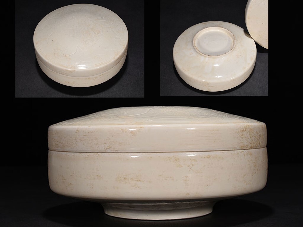 - YY200■宋時代 定窯 彫刻龍紋 果盒 収蔵珍品 古玩 唐物 古陶磁器■