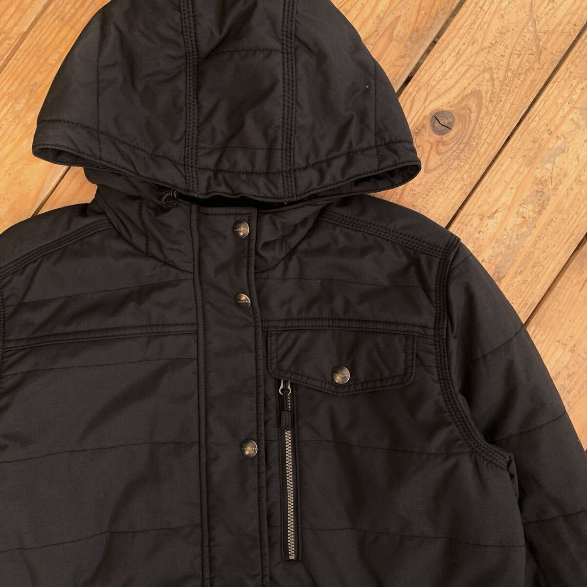 > USA古着 Carhartt カーハート ナイロンジャケット ガールズ Mサイズ 防寒 フルジップ アウトドア カジュアル ブラック アウター J4189