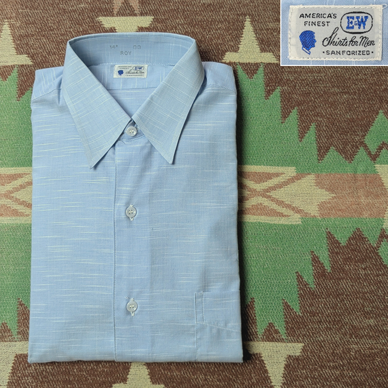 > かすり 【E&W】 60年代 ドレス シャツ S コットン カスリ ロカビリー ワーク デッドストック アメリカ製 ビンテージ 50s60s 50年代