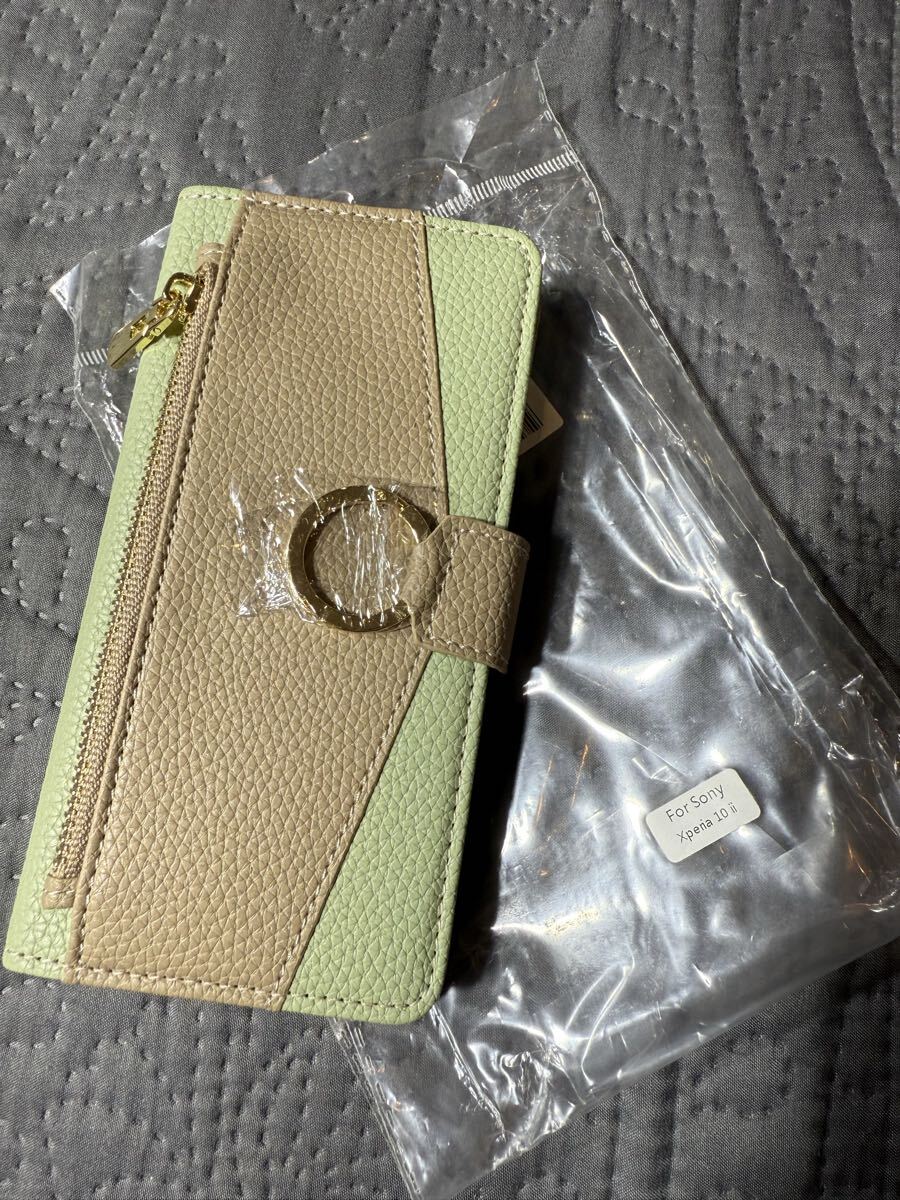 - Xperia10 ll 手帳型ケース グリーン ベージュ ファスナー付き