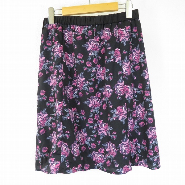 - #a ローラアシュレイ LAURAASHLEY スカート 9 黒 ピンク系 マルチ 花柄 バラ柄 レディース [941278] k01