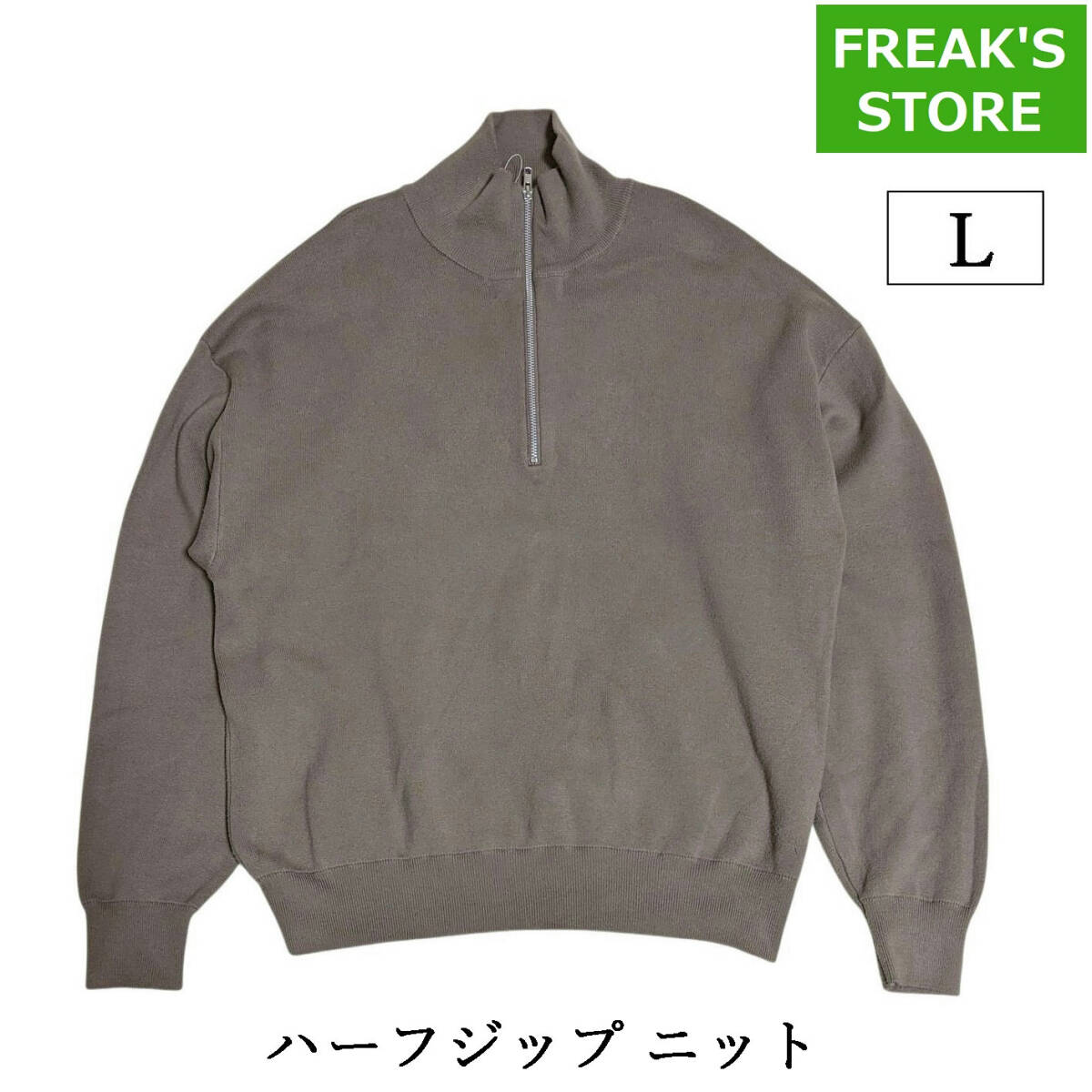 > FREAK'S STORE リラックスフィット スウェットライク ハーフジップニット セーター モカ ブラウン グレー L フリークスストア