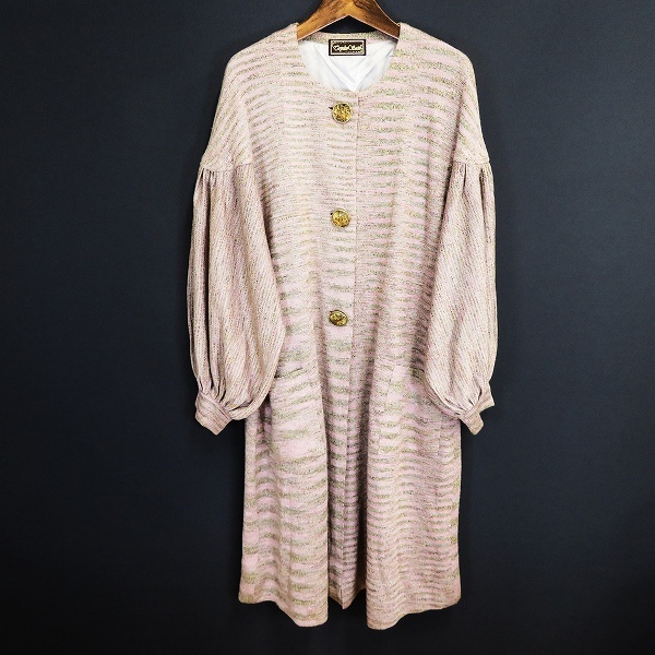 - #w サイトウトヨコ 斉藤都世子 コート ピンク マルチ ボーダー ニット ノーカラー ドロップショルダー レディース [963086] k01