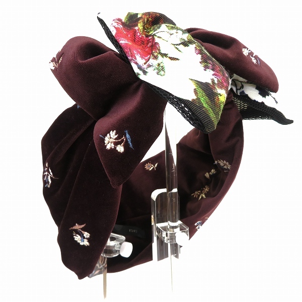 > #we カシラ CA4LA ヘアバンド ターバン エンジ マルチ 花柄 花刺繍 リボン ヘアアクセサリー ベロア調 美品 レディース [963113] k01