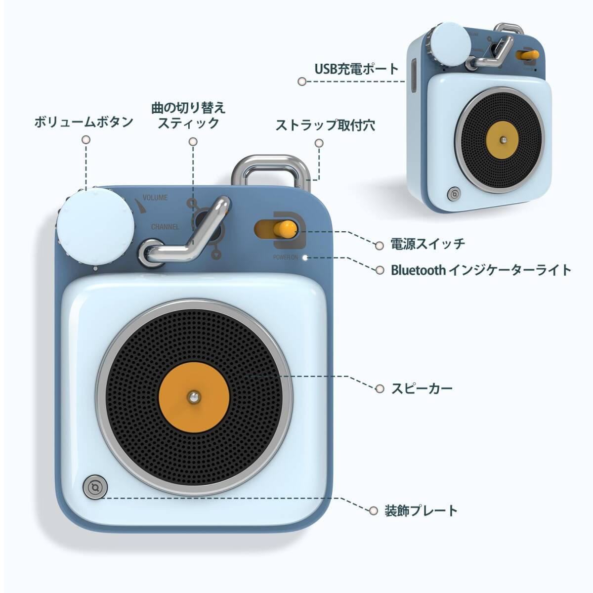 > ☆ポップでキュートな超小型Bluetoothスピーカー ブルー 高品質 安全設計