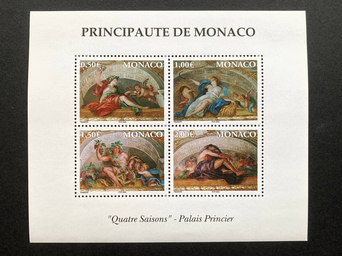 - 外国切手: モナコ切手 「(ドゥカーレ宮殿の[四角いアトリウム]の天井画)四季」 小型シート 未使用