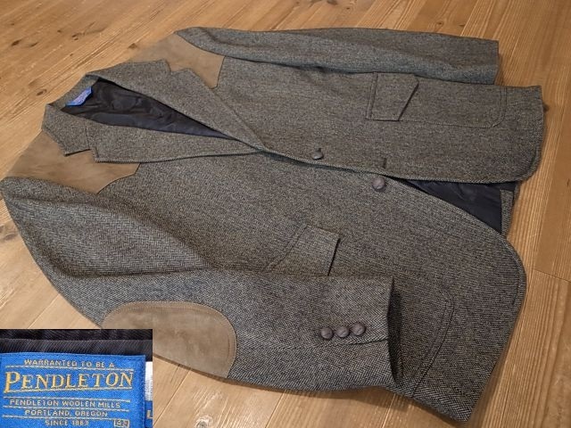 > 美品 PENDLETON ペンドルトン エルボーパッチ ツイード 2釦 ウエスタン カントリー テーラード ジャケット ブレザー サイズ 42L XL 相当