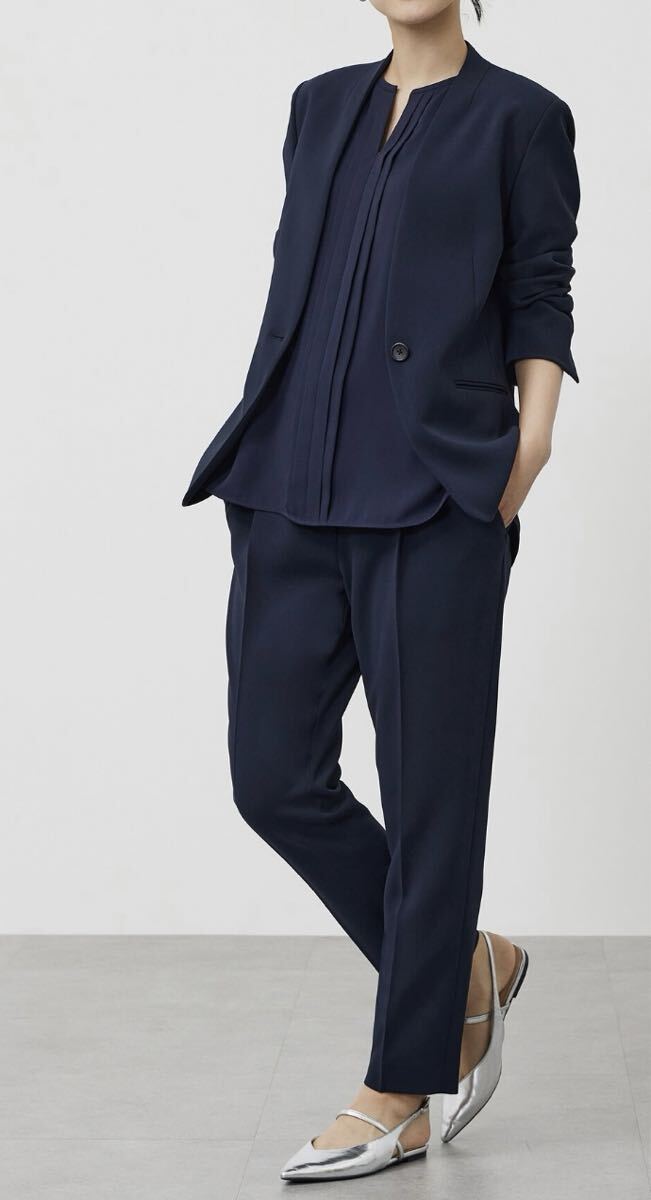 - 美品 PLST ノーカラースーツセットアップ ネイビー サイズXS ストレッチ