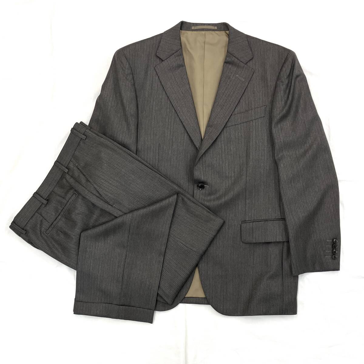 > 未使用 イージーオーダー 2つボタンスーツ ウールスーツ BB3位 グレー ブラウンストライプ 総裏 センターベント ノータック メンズ 21311