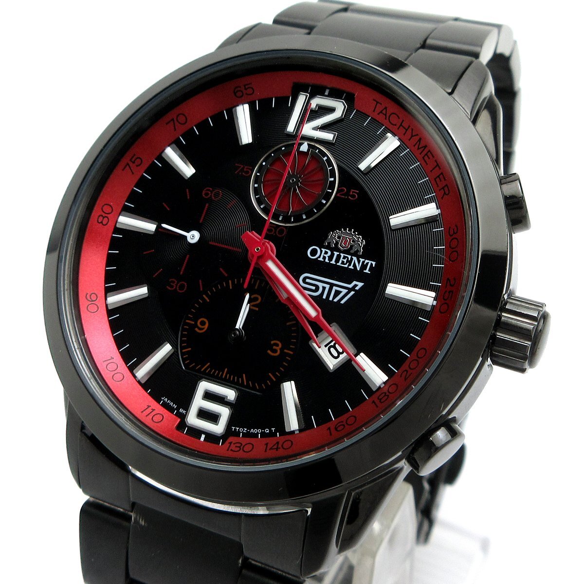 - 1円 オリエント ORIENT ワールドステージコレクション WV0191TT 限定 STI スバル コラボ メンズ クロノ 黒 赤 時計 クォーツ