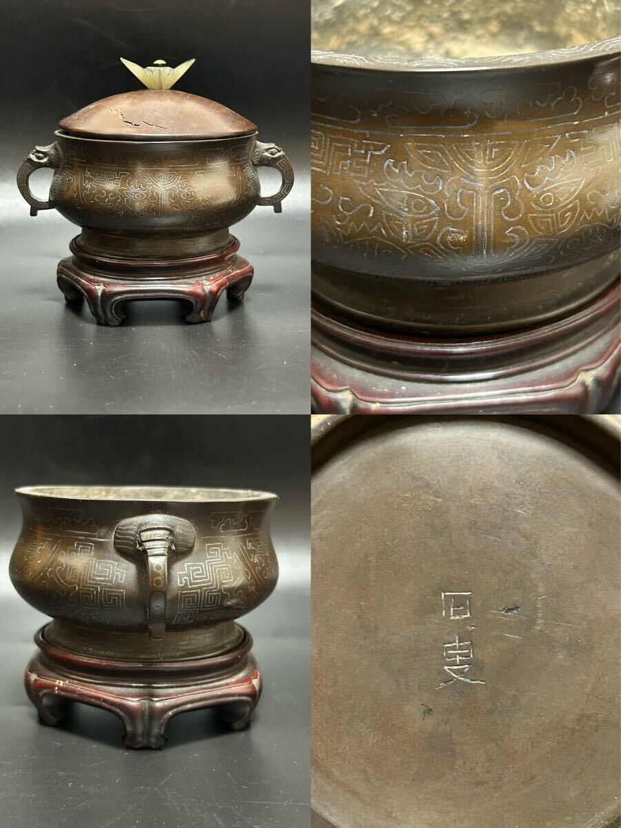 - 中国美術 古銅 香炉 石叟銘 銅製 時代物 骨董品 唐物 中国古玩 重約498g