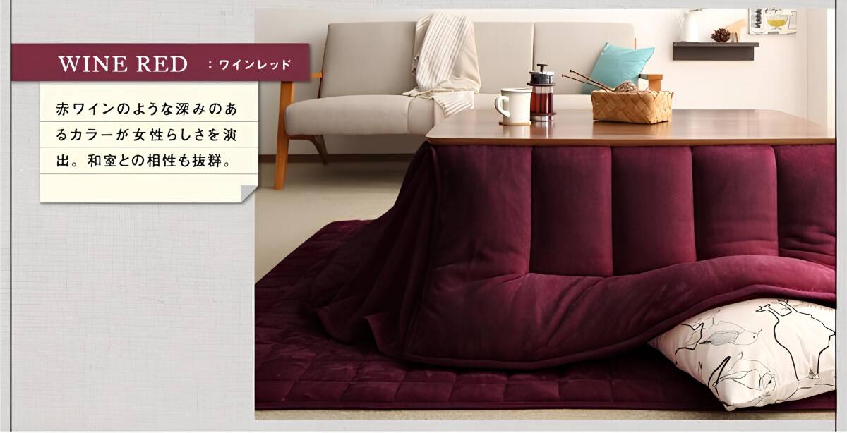 - 新品未使用 省スペースタイプ あったかマイクロファイバーフランネルこたつ布団 掛け布団単品 4尺長方形 80×120cm ワイン
